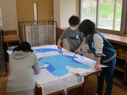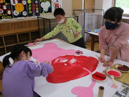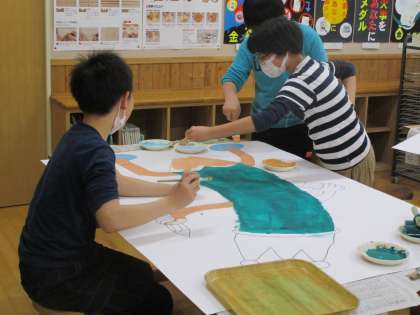 6年生が昨年度末に考案して全校のみんなの投票で選ばれた今年度の児童会新キャラクターが、間もなくデビューします。全校集会で行う紹介イベントに向け、新キャラクターのスケッチを6年生のみんなで色塗りしました。