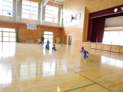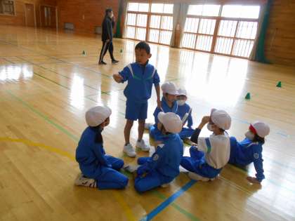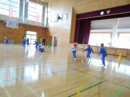 2,3年生は、体育でリレーの学習を行いました。走る順番やバトンパスのやり方を工夫して取り組みました。