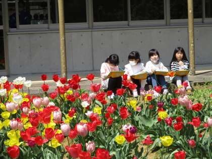 生活科では、学校探検に行き、校舎の中や校舎周りのいろいろな場所、物を見つけています。
