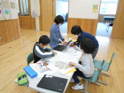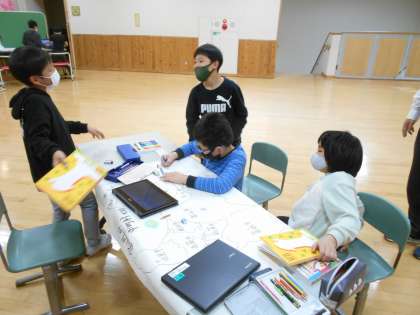 子供たちは、それぞれの市町村のすてきなところを調べてまとめました。地図に場所をかきこんだり、クイズにしたりして発表します。