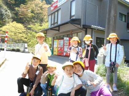 学校の南側の地図づくりをするために、校外学習に出かけました。郵便局やお寺、温泉等、地図記号に表わされている場所を確かめました。