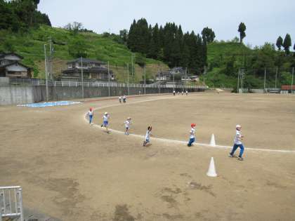 今日は、天候がよかったので、グラウンドでランニングをしました。1年生も、上級生に追いつこうと一生懸命走りました。