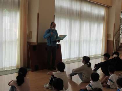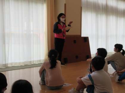 きらきらタイムに全校で集まって、スマイル班遠足の注意事項について確認しました。庄田先生からは、自分で準備を整えること、班のみんなと協力して活動すること、交通安全や熊等の動物に気を付けることなどの話がありました。小林先生からは、睡眠をとり体調を整えること、朝ご飯をしっかり食べることなどについて話がありました。
