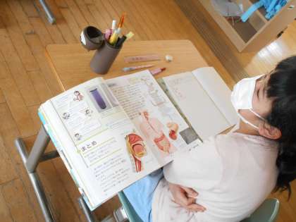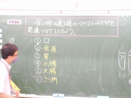 6年生は理科の学習で、人の体のつくりを学習しています。今日は、口から摂った食べ物がどのようにして消化されていくのかを学びました。