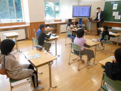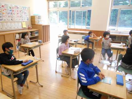 4年生にとって週に1回の外国語活動の時間がありました。「レッツ プレー〜」と声をかけて、友達を誘う活動に取り組みました。
