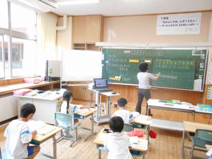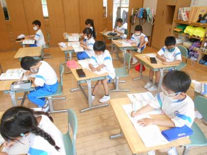1年生は算数科で、実際の場面を想定しながら、たし算の学習に取り組んでいます。