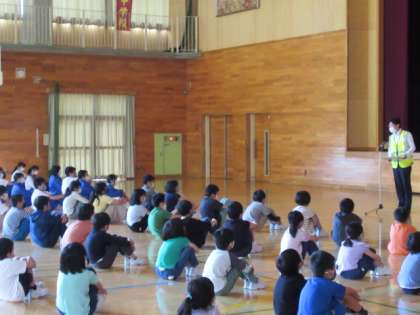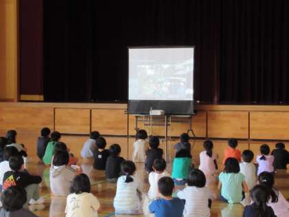 土砂災害が起こったことを想定して、小中合同の避難訓練を行いました。校長先生からの避難についてのお話を聞いた後に、動画を視聴しました。土砂災害が起こる仕組みやその前兆を学習しました。