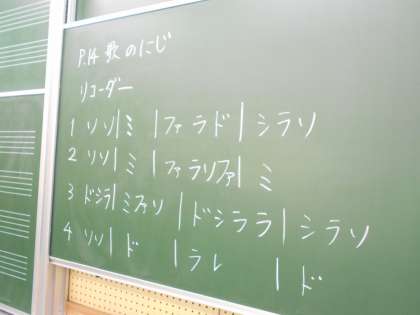 4年生はリコーダー演奏をするために、楽譜に階名を書き込みました。次回からリコーダー練習を始めます。