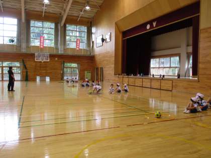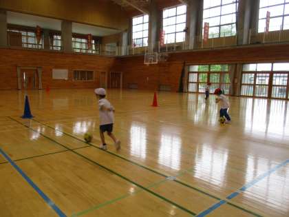 コーンで回ったり、まっすぐ蹴ったりするのが、まだ難しい様子ですが、頑張って練習しています。