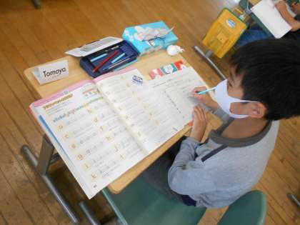 5年生はアルファベットの小文字を学びました。書き取りの練習にも取り組みました。