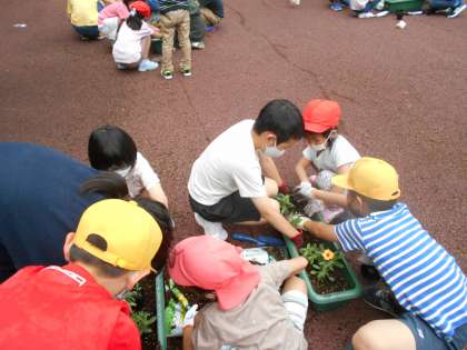 スマイル班のみんなで夏向けの花(植物)の苗をプランターに植え付けました。水やりなどのお世話をして、きれいな花を咲かせましょう。