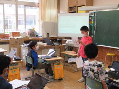 夏をテーマにして作った俳句を発表しました。友達の俳句をスプレッドシートで点数化してみんなで評価しあい、表現のよさを伝え合いました。