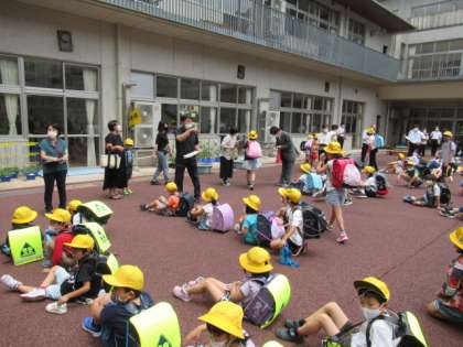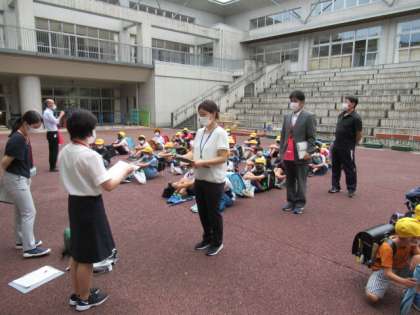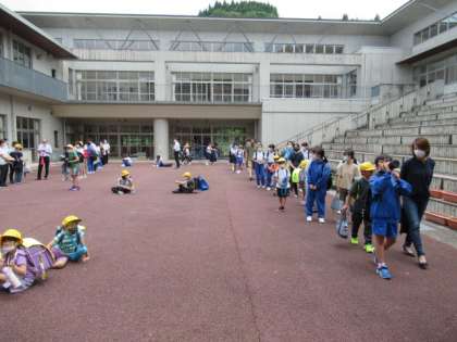 学習参観後、引き渡し訓練を行いました。小学校、中学校で、万が一に備えた動きを確認することができました。