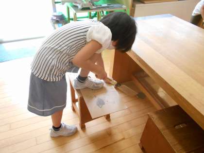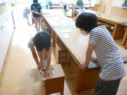 4年生は図工科の学習で、のこぎりを使う学習に取り組んでいます。安全に気を付けて作業をしていました。