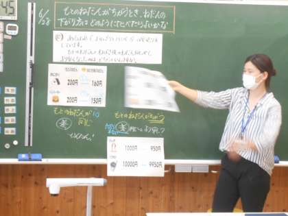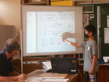 5年生は、小数の倍を考える学習に取り組みました。もとにする量と比べられる量を数直線を利用しながら比べました。