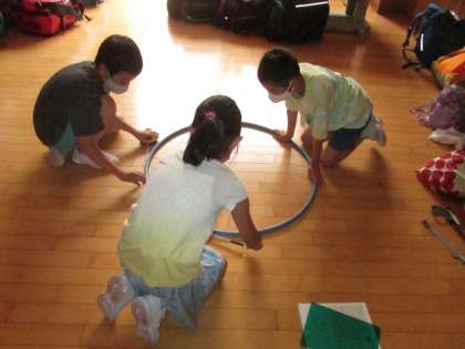 昨日になりますが、算数で巻き尺を使って長さ調べをしました。長いもの、まっすぐではないものなど、竹物差しでは、はかることができないものをはかって、便利さを実感しました。