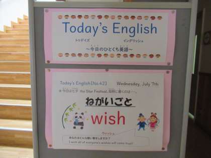 「今日のひとくち英語」は七夕に関する単語でした。皆さんは、どんな願いごとをしますか。