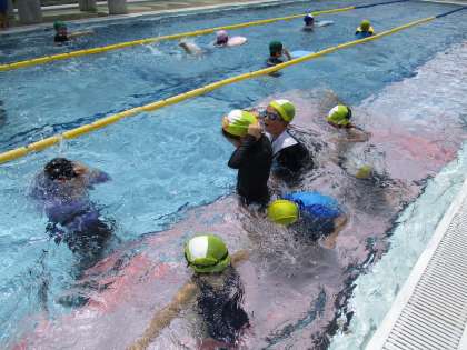 各自が選んだチームに分かれ、もぐる練習やビート板を用いた練習等、自分の力に合った学習を行いました。