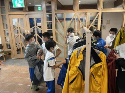 濡れてしまったカッパが乾きました。部屋に持って明日の準備をします。