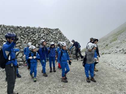 到着しました! みんな元気です。トイレ休憩と行動食を食べて雄山登頂に備えます。