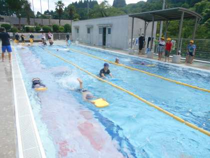 午前中は日差しがあり、絶好のタイミングで水泳学習ができました。5,6年生は昨日、立山登山をしたにも関わらず、元気な様子で楽しんでいました。水泳をすることで、かえって疲れがとれたかもしれません。