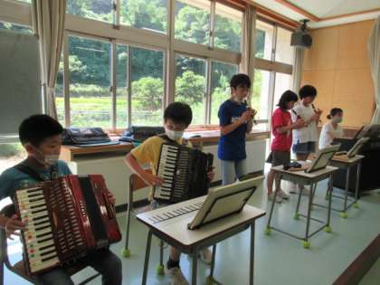 それぞれに楽器を選んで、合奏の練習中です。音を確かめながら、自分のパートを整えていきました。
