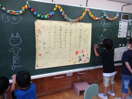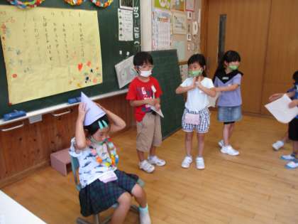 1学期に誕生日を迎えた友達のお祝いや、絵しりとり、爆弾ゲーム等を行い、クラスみんなで楽しみました。