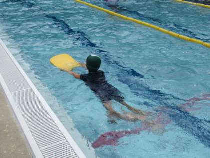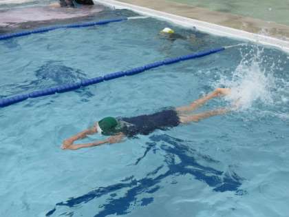 今日もプールは、子供たちで賑わっています。水泳教室では、脚の使い方を丁寧に確認しながら練習を繰り返しています。一般開放の方では、泳いだり、潜りじゃんけんをしたりして、水と戯れる様子が見られました。