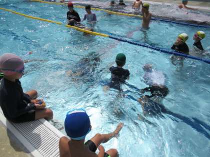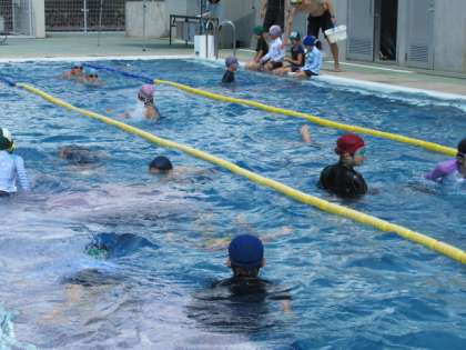 今日も、プール開放にはたくさんの子供たちが来ました。水泳教室の子供たちも、潜ることにすっかり慣れ、泳ぐ距離を伸ばして頑張っています。