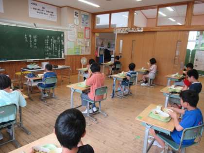 今日から2学期の給食が始まりました。手洗い、手指消毒を必ずすること、座席を広げて前向きにすることや静かにすること等をあらためて確認し、給食をいただきました。