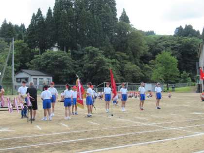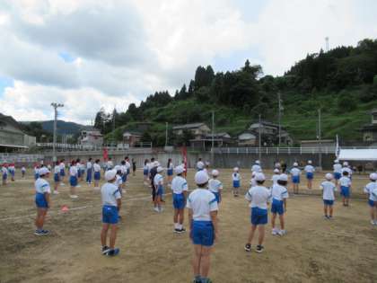 初めてグラウンドで練習しました。感染症対策をした開・閉会式の動きを皆で確かめていきました。