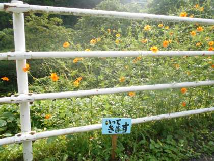 コスモスの根元には、小さな看板がそえてあり、まるでコスモスが話しかけているように感じました。