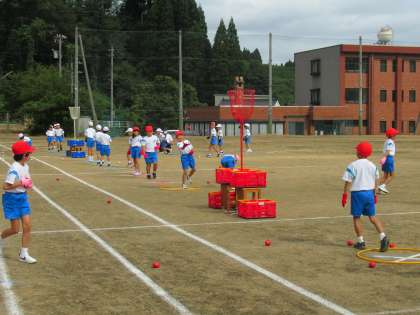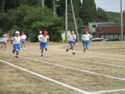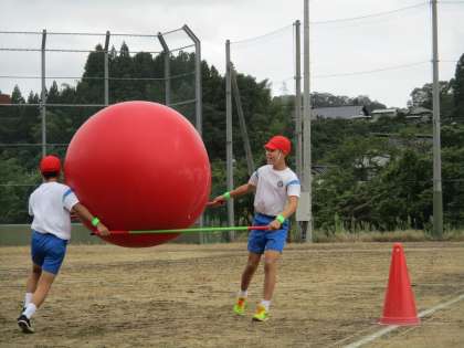 1枚目は、徒競走。2枚目は、玉入れ「あわせていくつ?」。3枚目は、大玉運び「ヤマディージョーンズ」の様子です。