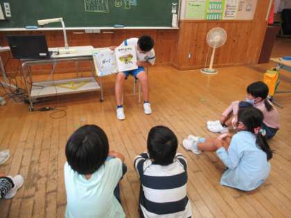 スマイル班での読み聞かせ(2回目)を行いました。今回の担当児童も、みんなに伝えたい本を選んできました。お気に入りの本とあって、挿絵もストーリーもおもしろい物ばかりでした。