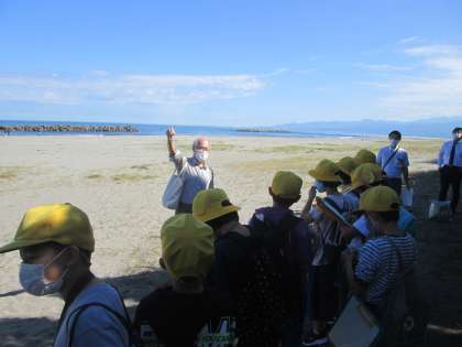 ごみや環境の学習で学んだことを深めるために、富山市の平野部を流れる川にかけられた網場や岩瀬浜の様子を見学してきました。