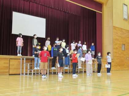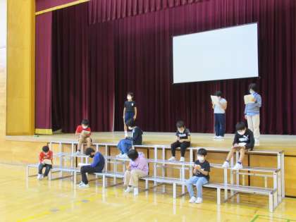 学習発表会に向けて、練習中です。場面と場面のつながりを確認しました。