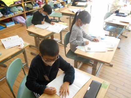 国語科の学習で、話した言葉を「かぎ」を使って書くことを学びました。ユニークな会話の様子が伝わってきました。