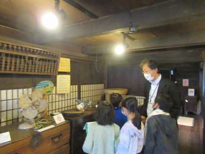 民俗民芸村では、昔の「炭火アイロン」や電気を使わない「冷蔵庫」等、昔の人の知恵がつまった道具をたくさん見学しました。