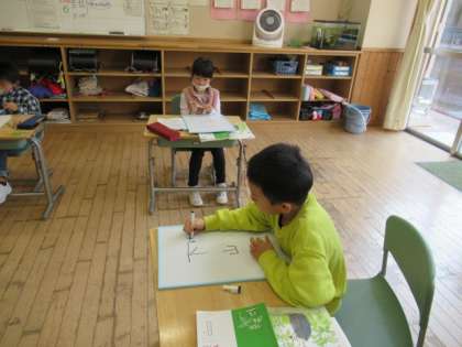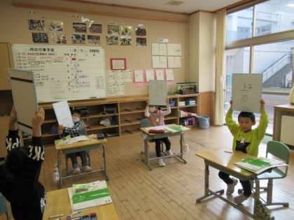 漢字一つにいろいろな読み方があること、送り仮名によって読み方が決まることを学習しました。問題の漢字をボードに書き、クイズをしながら確かめていきました。