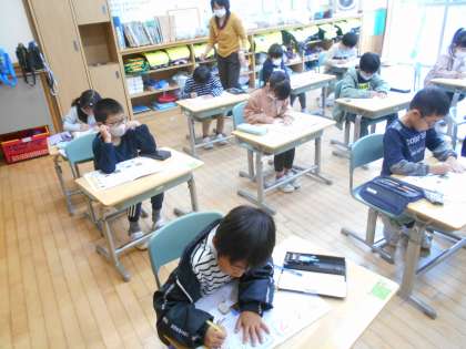 1年生は国語科でカタカナの書き取り練習に取り組みました。しっかりとした筆圧で丁寧に書く様子が見受けられました。