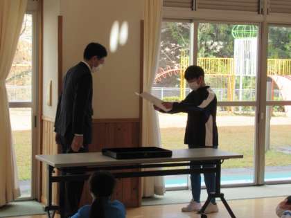 富山市チャレンジ陸上記録会において、50メートル走で4位になった児童へ授賞伝達を行いました。入賞、おめでとう!