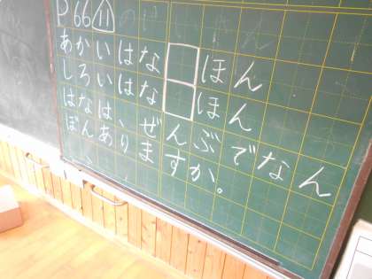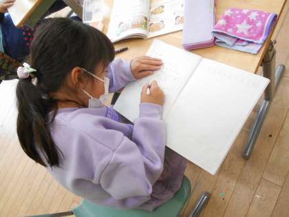 1年生は算数科で、たし算の文章問題に取り組みました。ノートに問題文を書き写したり、式と答えを書いたりしていました。ノートづくりが上手になってきています。