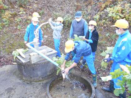 井戸水で丁寧に泥を洗い流し、うれしそうな表情で持ち帰りました。