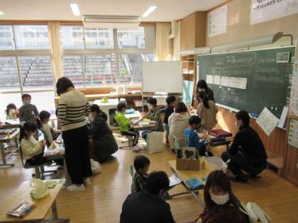 おうちの方に頑張っている様子を見ていただきました。1年生は、生活科、2・3年生は合同で学級活動をしました。