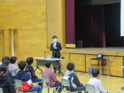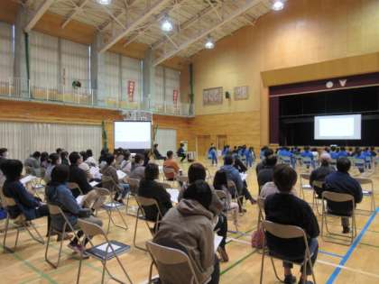 小中で取り組んだ「元気スイッチオン週間」の取組から、見えてきた実態をもとにして、メディアとの関わり方について、富山大学の山田先生にお話をいただきました。子供たちからは、山田先生の「依存症になると、脳が萎縮する」という話から、自分の生活を見直したいという感想がありました。