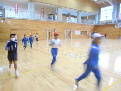 今日の大休憩は、久しぶりに全校で体力つくり活動に取り組みました。子供たちは、体育館を走ったり、縄跳びをしたりして体を動かしました。