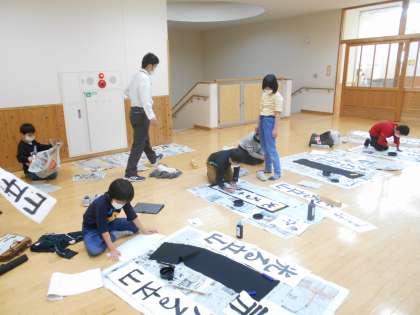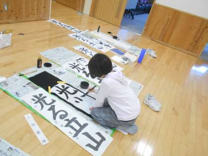 4年生は書き初めの練習にとりくみました。墨のつけ方に気を付けながら慎重に書きました。
