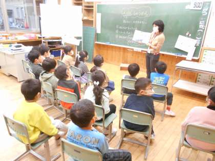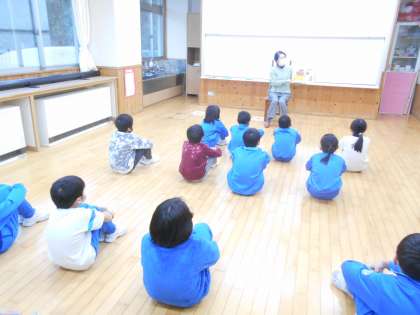 今日の朝活動に読み聞かせがありました。人権週間に合わせた本を選んで行いました。どの子もお話に聞きいっていました。