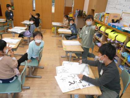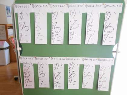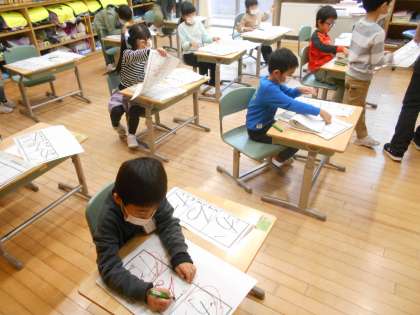 1年生は、硬筆による書き初めの練習に取り組みました。文字の大きさや色の濃さに気を付けながら書きました。
