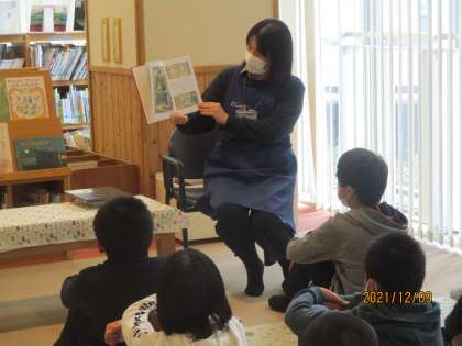図書館司書の先生にブックトークをしていただきました。「アンナの赤いオーバー」という絵本を始めとする4冊の本を紹介していただきました。子供たちは、これまであまり読んでいないジャンルの本にも興味をもっていました。